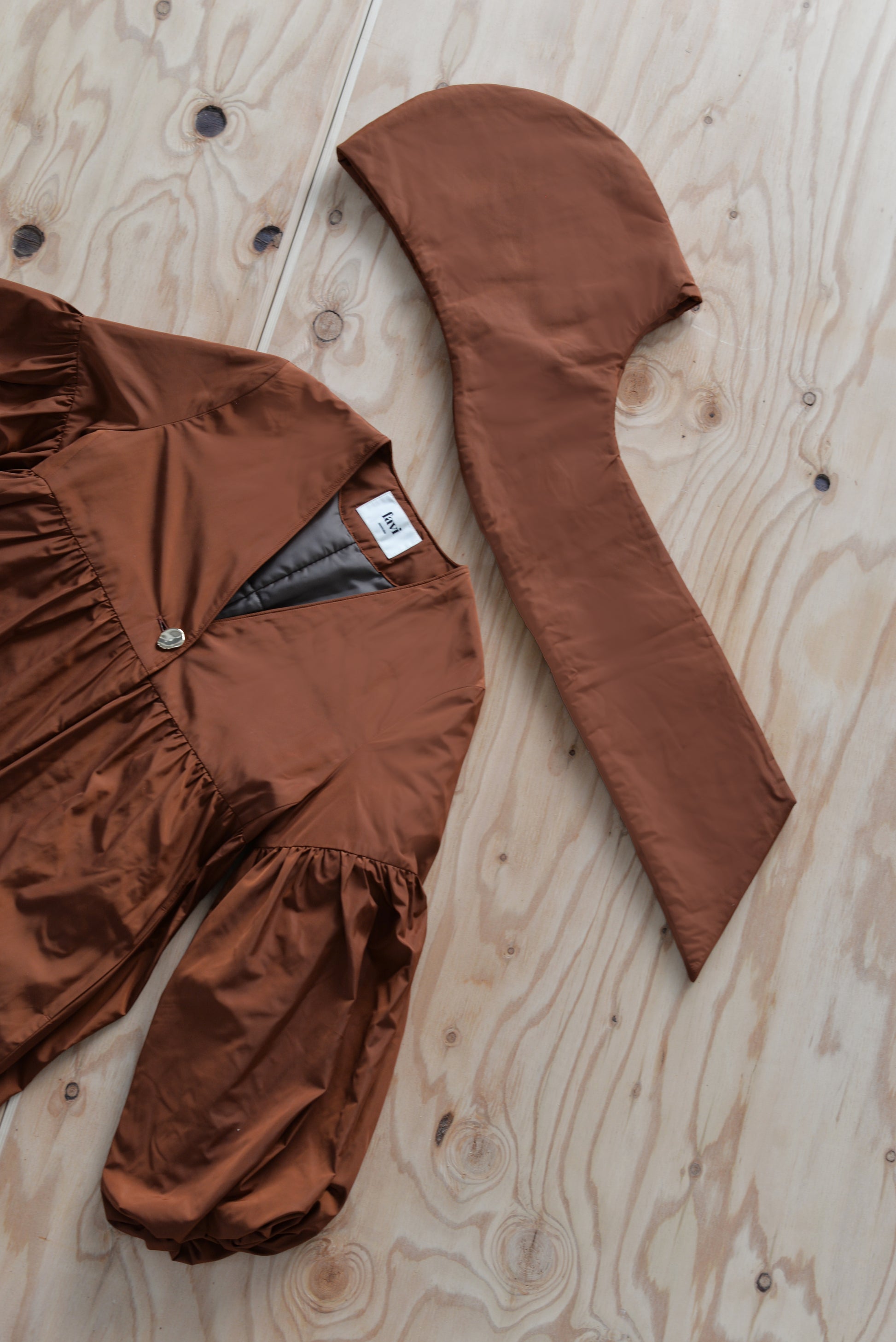 中綿には、木の実から採れる保温性に優れた天然素材KAPOK(カポック)を使用し、見た目以上にあたたかな着け心地に。