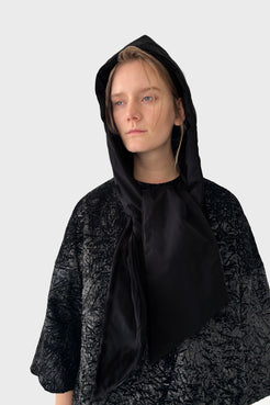 フードとマフラーが一体となった、実用性とデザイン性を兼ね備えたフードストール。