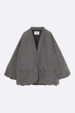 軽やかさと暖かさを兼ね備えた、中綿入りのジャケット。中綿には木の実由来の天然素材〈カポック〉を使用しており、空気をたっぷり含む繊維構造により、ボリューム感がありながらも軽やかな着心地を実現しています。 表地は控えめな光沢と表情感のある...