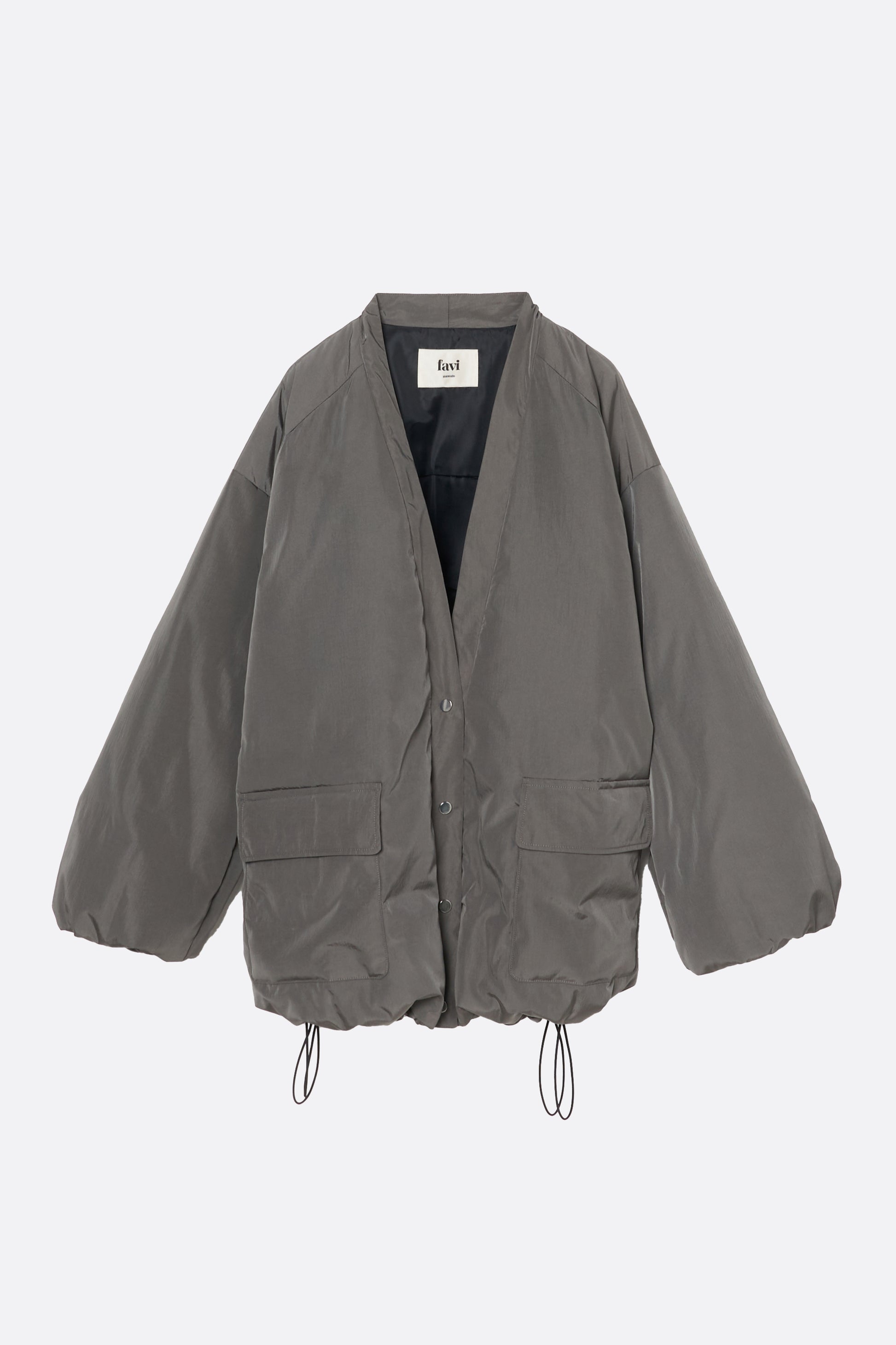中綿には木の実由来の天然素材〈カポック〉を使用しており、空気をたっぷり含む繊維構造により、ボリューム感がありながらも軽やかな着心地を実現しています。